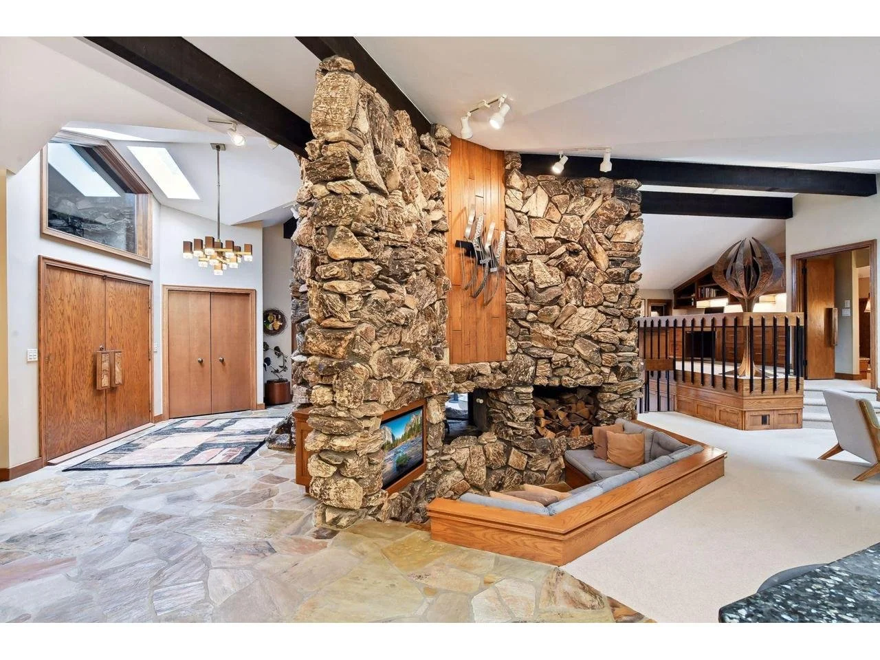 I tend to love the 70s, and there’s something to be said for the experimentation of the time, playing with funky materials but also with creative open layouts and volumes of space. Many DIY tutorials have been made for updating a 70s fireplace and so on, but I would love to find a way to embrace this kind of architecture, in all its weird and craggy glory.