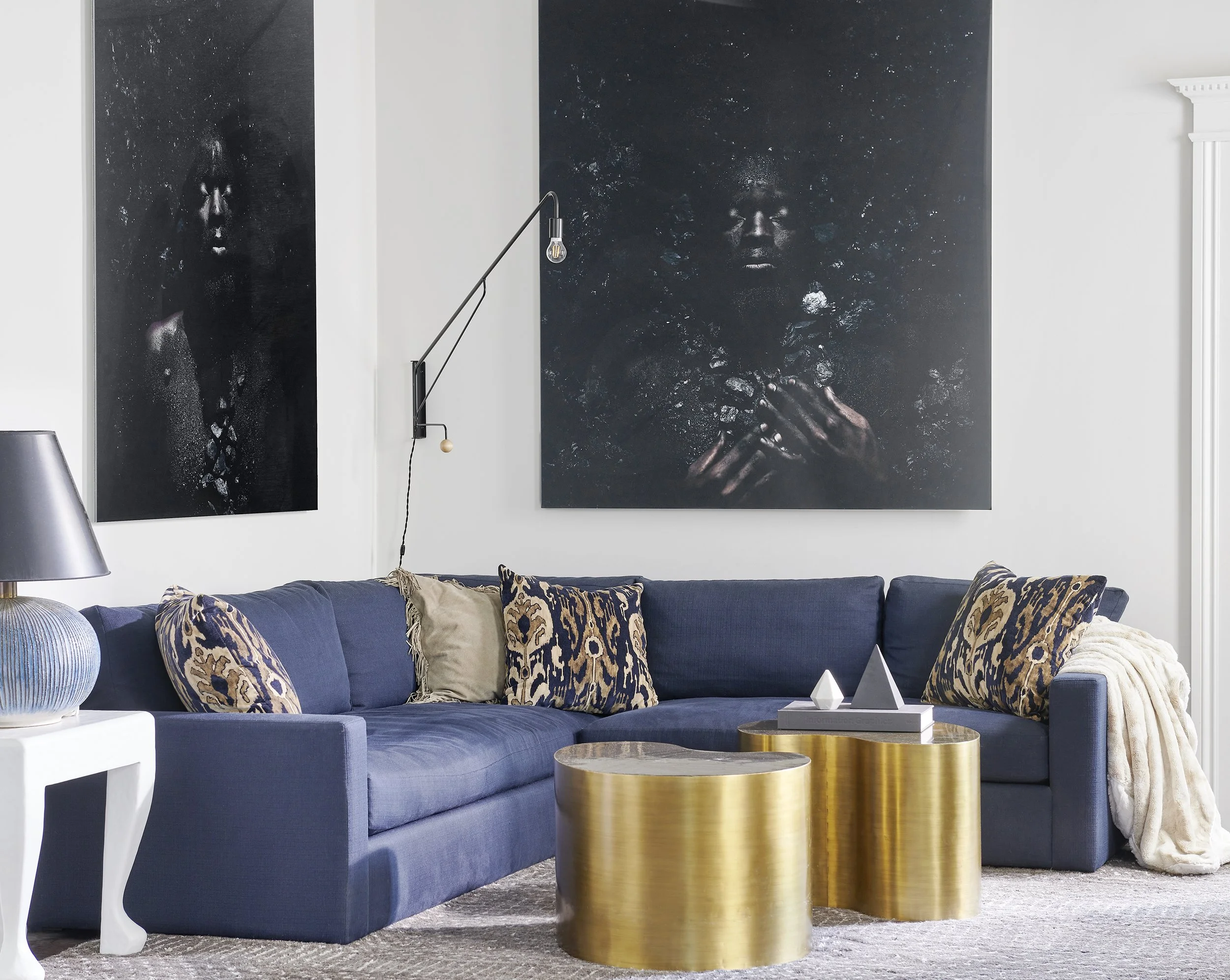 For all of the interest but less of the drama, a two-tone rug with a larger, simpler diamond pattern can do the trick. In this Minneapolis living room, the navy pattern on grey ground is a quieter take on this style. Pulling the two tones from other furniture (navy from the couch and grey from the bench) makes the rug even more of a cohesive, supporting player.